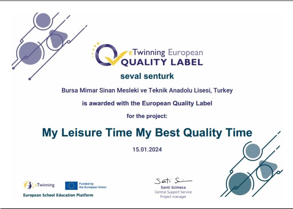İNGİLİZCE ÖĞRETMENİMİZ E-TWİNNİNG PROJESİYLE ULUSAL KALİTE ETİKETİ ALARAK OKULUMUZU ONURLANDIRMIŞTI. AYNI PROJEYLE "AVRUPA KALİTE ETİKETİ" ALMASI MİLLİ EĞİTİM CAMİASI İÇİN AYRI BİR GURUR KAYNAĞI OLMUŞTUR. KENDİSİNİ VE PROJEDE EMEK SARFEDEN ÖĞRENCİLERİMİZİ TEBRİK EDİYOR, BAŞARILARININ DEVAMINI DİLİYORUZ.