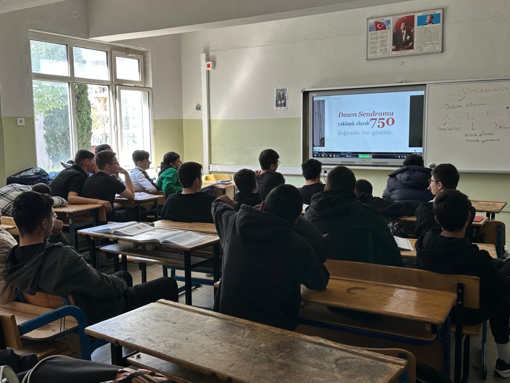 BİYOLOJİ ZÜMREMİZ, DOWN SENDROMU FARKINDALIK HAFTASINDA, 9. VE 10. SINIF ÖĞRENCİLERİMİZE, DOWN SENDROMU'NU TANITTI. DOWN SENDROMU'NUN BİR HASTALIK DEĞİL, BİR "KROMOZOM FAZLALIĞI" OLDUĞUNU ANLATAN MÜKEMMEL BİR SUNUM YAPTI. ...