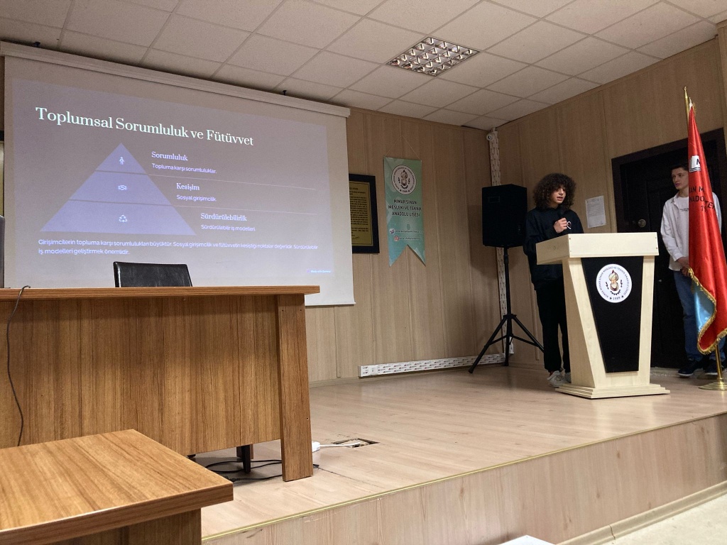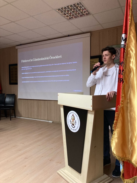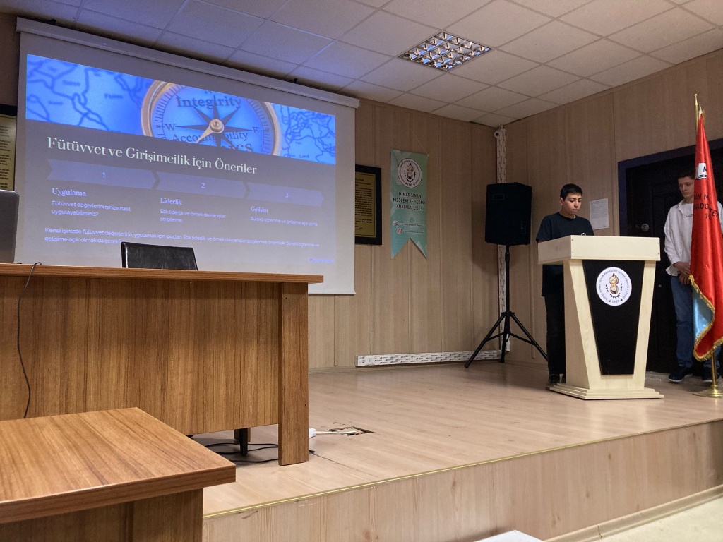 BEN HER YERDE VARIM PROJESİ KAPSAMINDA FÜTÜVVET VE AHİLİK KONUSUNU İŞLEDİK. MOTORLU ARAÇLAR TEKNOLOJİSİ ÖĞRETMENİ YAVUZ DEMİRCİ REHBERLİĞİNDEKİ ÖĞRENCİLERİMİZ, GÖRSEL MATERYALLERLE DESTEKLENMİŞ SUNUMLARIYLA, BAŞARILI BİR SUNUM GERÇEKLEŞTİRDİ. ...