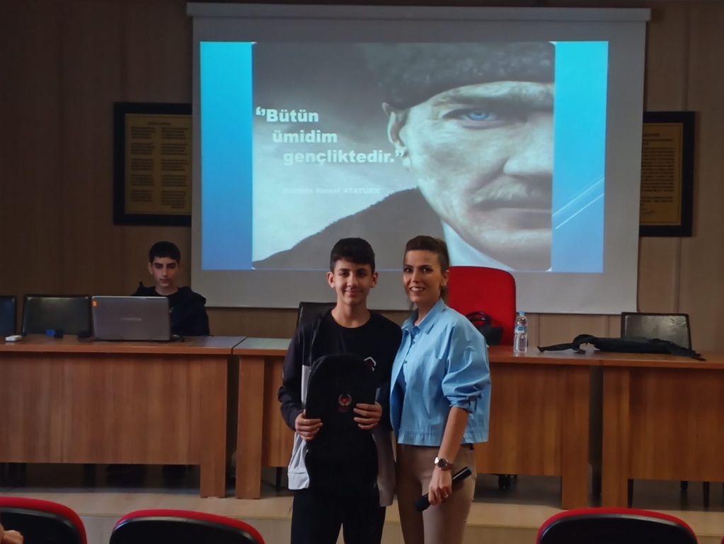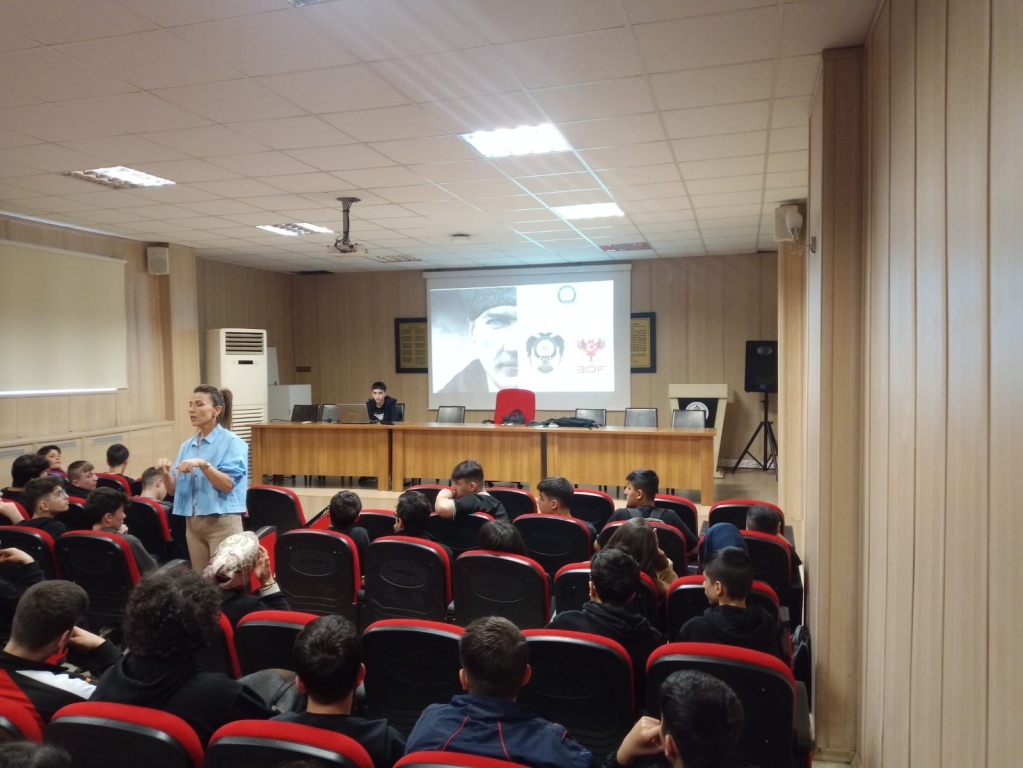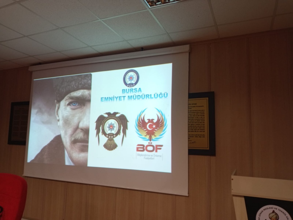 BEM’İN TERÖRLE MÜCADELE ŞUBESİ GÖREVLİLERİ OKULUMUZUN 9. SINIF ÖĞRENCİLERİNE “GENÇLİK VE GÜVENLİ GELECEK” KONULU BİR SEMİNER VERDİ. SEMİNERDE TERÖRÜN FARKLI YÜZLERİNE İŞARET EDİLDİ. GELECEĞİMİZİN TEMİNATI OLAN GENÇLER, TERÖRLE MÜCADELEYE KARŞI DUYARLILIK KAZANDI. DAİMA UYANIK OLAN BİR GENÇLİĞİN ANCAK ÜLKEMİZİ YARINLARA TAŞIYABİLECEĞİNİ ÖĞRENDİLER...
