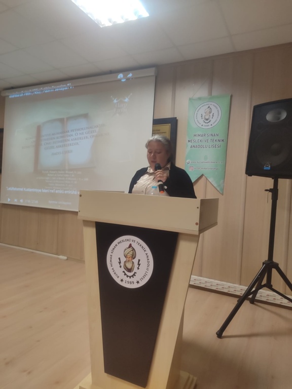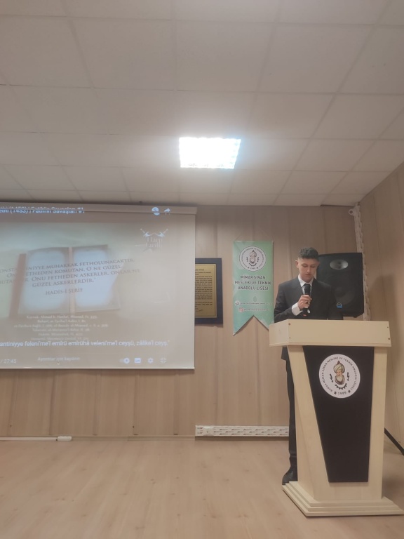 TARİH ZÜMREMİZ, İSTANBUL’UN FETHİNİ GÖRSEL MATERYALLER EŞLİĞİNDE ANLATAN BİR SEMİNER VERDİ. SLAYT VE VİDEOLARLA ÖĞRENCİLERİMİZE ŞANLI TARİHİMİZİN ŞEREF LEVHALARINDAN BİRİ ANLATILDI.