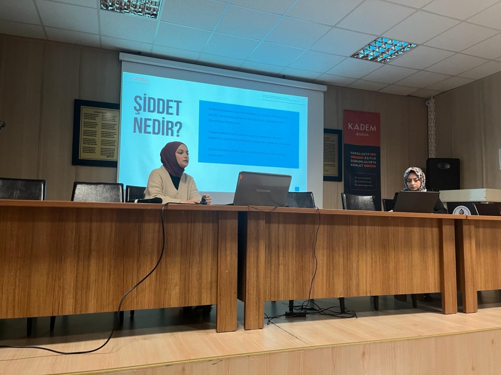22.02.2024 PERŞEMBE GÜNÜ, KADEM GÖREVLİLERİ AVUKAT HİLAL UYGAN VE SOSYOLOG SEKİNE TAŞÇI, OKULUMUZDAKİ KIZ ÖĞRENCİLERE “ŞİDDETİN ANATOMİSİ VE ÇÖZÜM YOLLARI EĞİTİMİ” KONULU SEMİNER VERDİ.