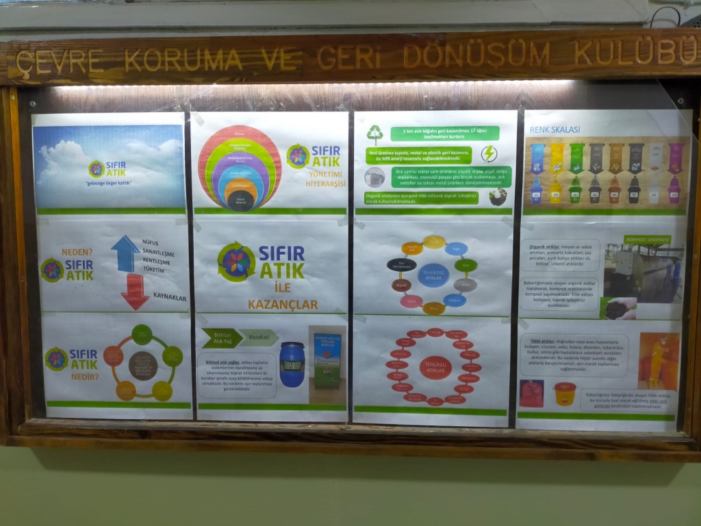 Okulumuzda çevre bilincini artırmak amacıyla öğrencilerimize yönelik sıfır atık ve geri dönüşüm seminerleri düzenlenmiştir. Plastik, kâğıt, pil gibi atıkların ayrıştırılması konusunda farkındalık çalışmaları yapılmış, geri dönüşüm kutuları okulun farklı alanlarına yerleştirilmiştir.