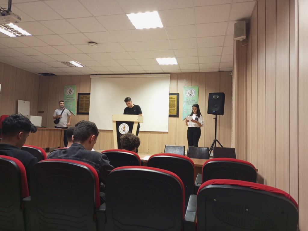 KÜLTÜR EDEBİYAT KULÜBÜMÜZ, 12 FARKLI ŞAİRİN 12 ŞİİRİNDEN OLUŞAN BİR SEÇKİYİ ÖĞRENCİLERİMİZE SUNDU. FAKLI TEMALARI İŞLEYEN ŞİİRLER, DUYGULARA TERCÜMANLIK YAPMIŞ OLDU. ÖĞRENCİLERİMİZ, HİSLERİMİZİ EDEBİ BİR ÜSLUPLA İFADE ETMENİN İNSAN ÜZERİNDEKİ ETKİSİNİ KAVRADILAR.